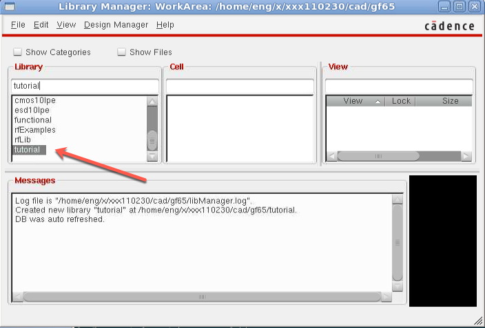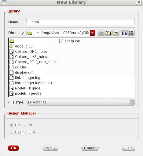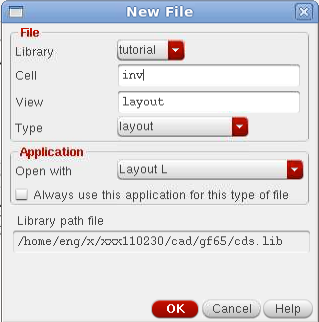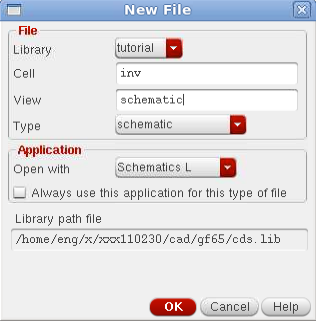 Design libraries are the places where you store your designs. The first step of IC design in Cadence is to create a design library so you can develop your design. Now we are going to create a design library called tutorial then put the design of the inverter in it.