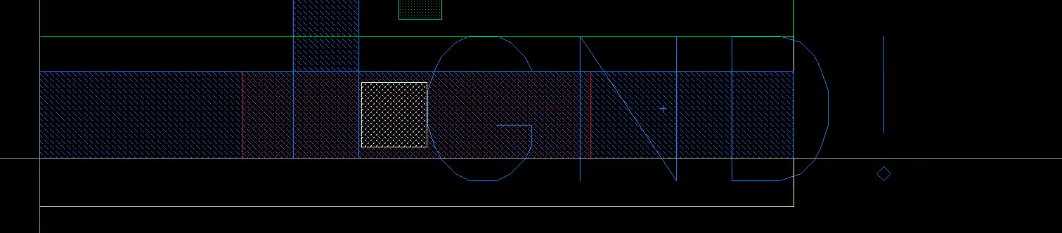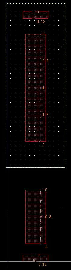 7.Click on JZ drawing layer and create two rectangles as shown. One rectangle will surround the second RX, and the other will surround the fourth RX.