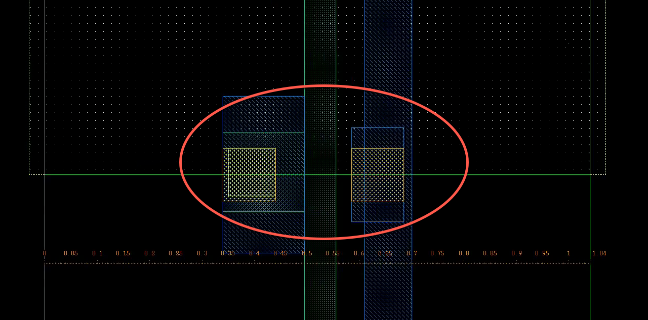 12.Click on V1 drawing layer and create rectangles as shown, there are TWO V1 rectangles in red circles, and you don't need to drawing those circles.
