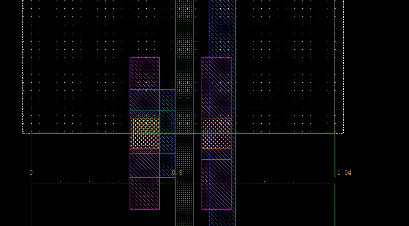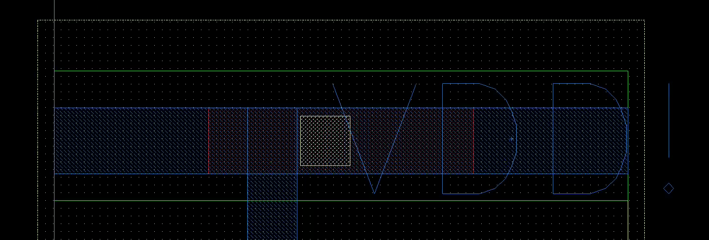8.Click on JX drawing layer and create two rectangles as shown. They will surround the other two RX rectangles.