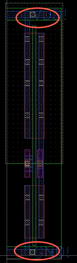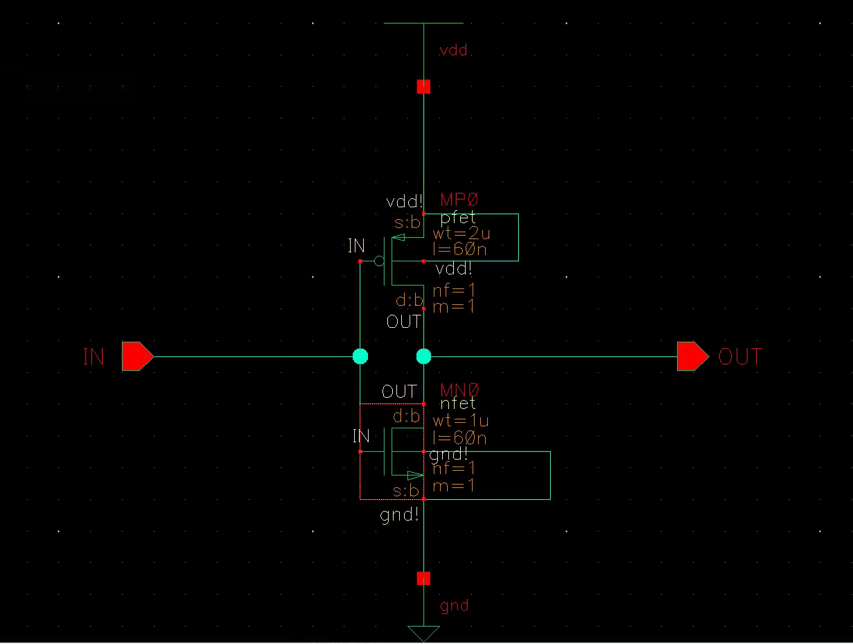 Your final inverter layout should be similar to this, now you can start to run DRC