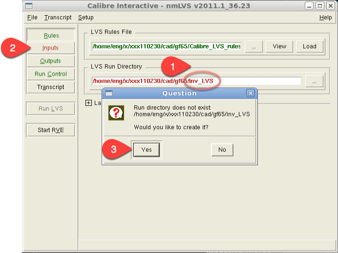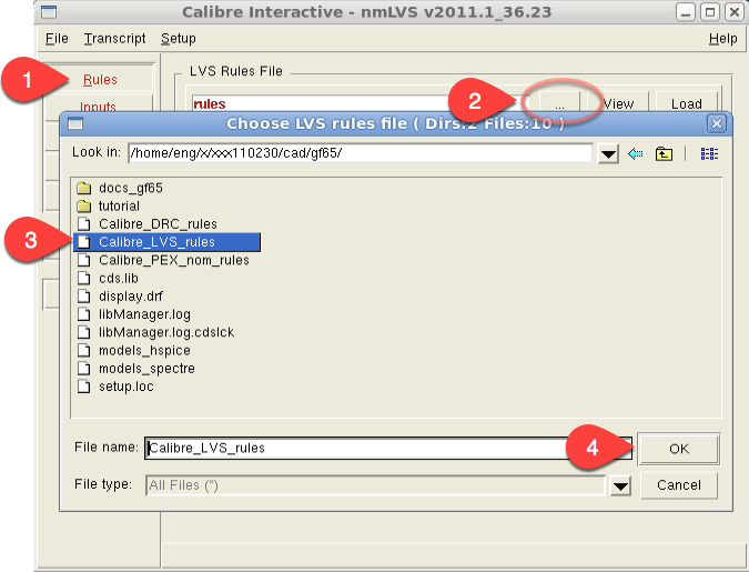 Click Rules tab first, LVS Rules File is located in the gf65 folder in your home directory, named Calibre_LVS_rules