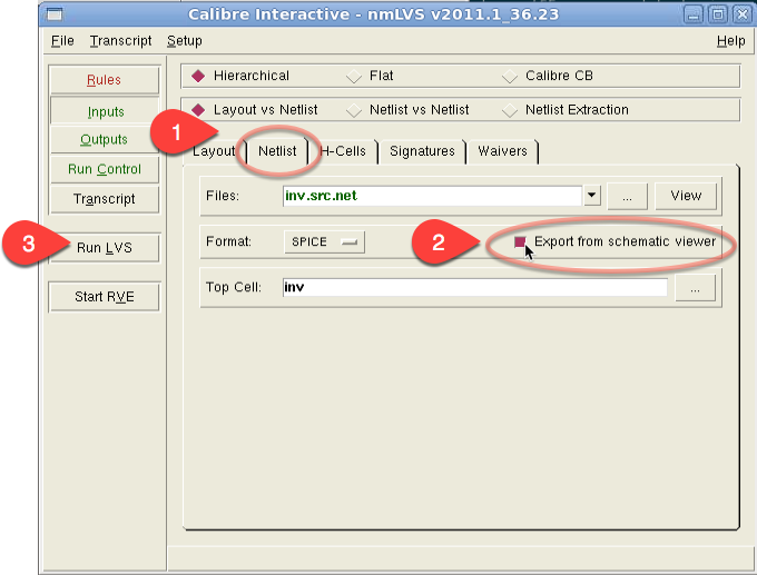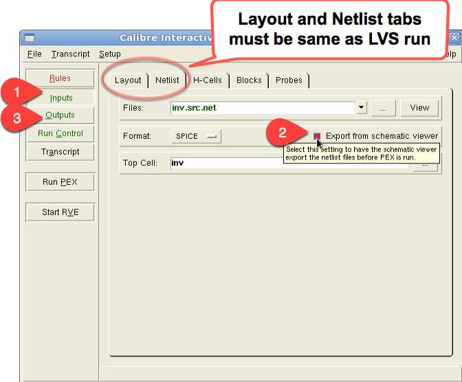 In Inputs tab, make sure Layout and Netlist tabs setup same as LVS run