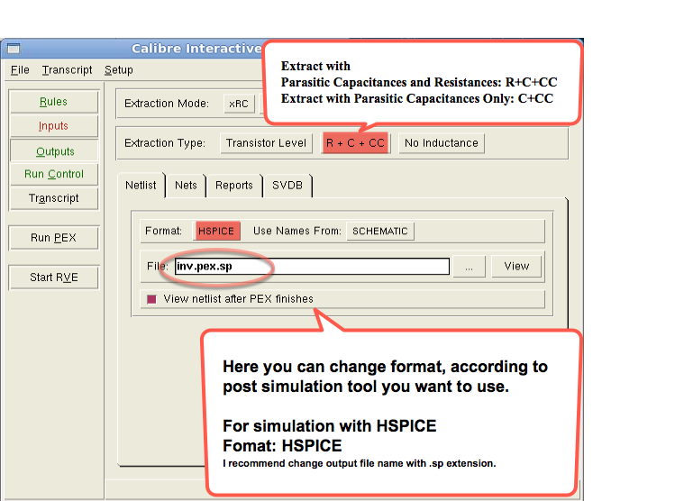 In Outputs tab, for simulation with HSPICE, setup as below, or you can setup based on your need.
