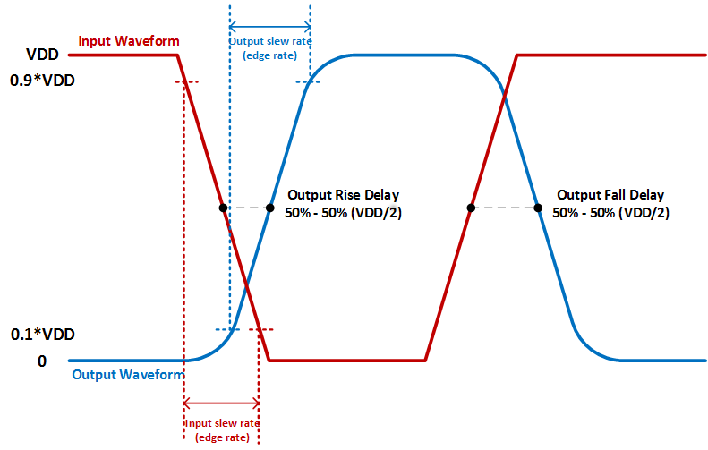 Slew rate: the time period for a signal between 0.1*vdd and 0.9*vdd.