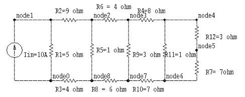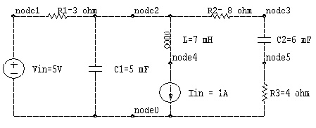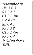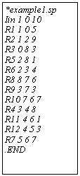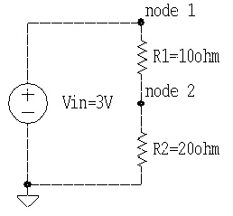 Okay, let's start with a simple circuit. This circuit is simple, by inspection you know how the circuit works. By naming the nodes as shown in the figure, an input file to Hspice to simulate the circuit can be like this: