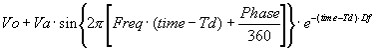 The SIN form causes the voltage to start at Vo+Va and stay there for Td seconds. Then, the voltage becomes an exponentially-damped sine wave described by this formula: