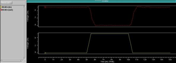 vin IN GND! pwl(0ns 1.2v 1ns 1.2v 1.05ns 0v 6ns 0v 6.05ns 1.2v 12ns 1.2v)