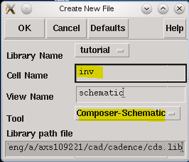 Once you have created a design library, you can start to put your design into it. We are going to design a inverter (INV) as example