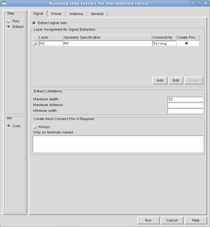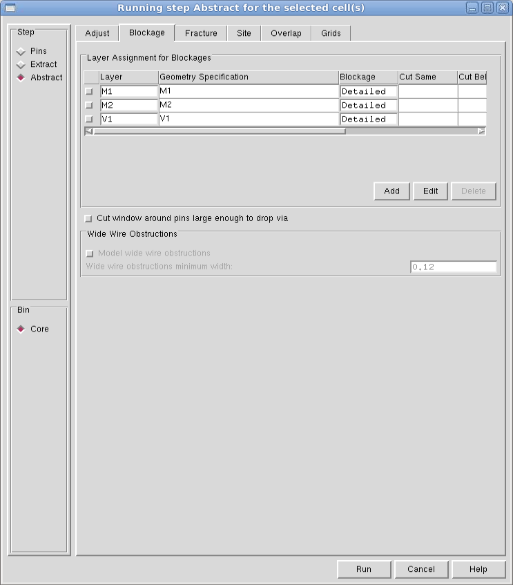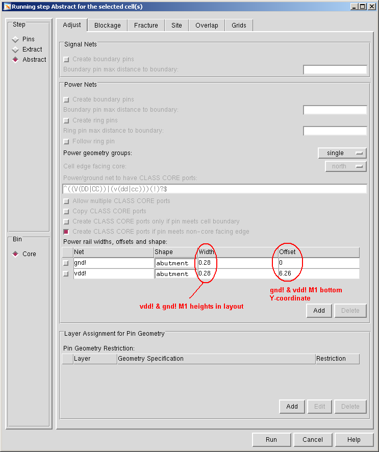 Now, run the native_abs.pl script. This script converts your LEF file to a format that Encounter can read, and uses physical information from the ASCII file to warn the auto-routing tools about extraneous metal objects. Invoke the script by typing: