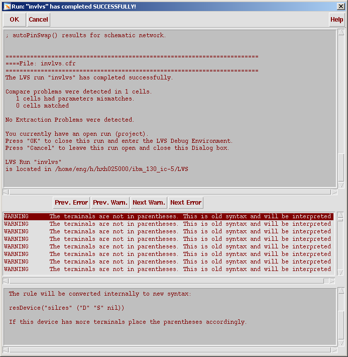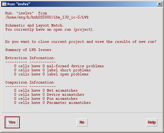 Run LVS check as before, make sure pick the 6 Metal rules.