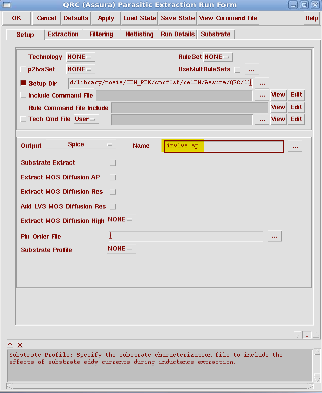 If you went through the setup section, you should have the library file and display files for cadence (two directories: Assura and Spectre; and five files: .cdsenv, .cdsinit, display.drf, cds.lib and assura_tech.lib). If you haven't setup since then, please do so.