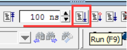 Runis running a fixed time per click (such as 100ns);Run allis running until hit break.Then debug waveforms. If modify source code, you need to re-compile and simulate again.